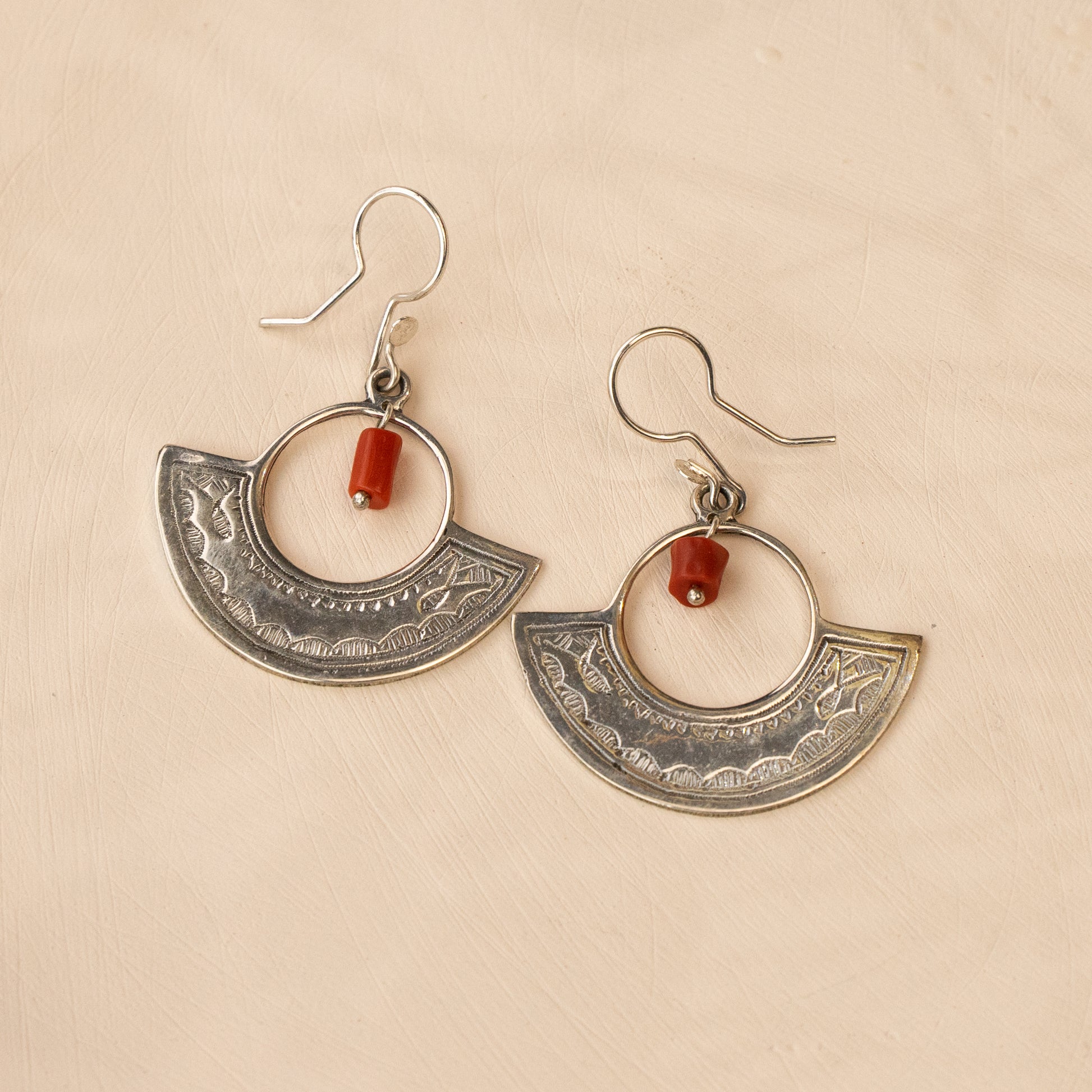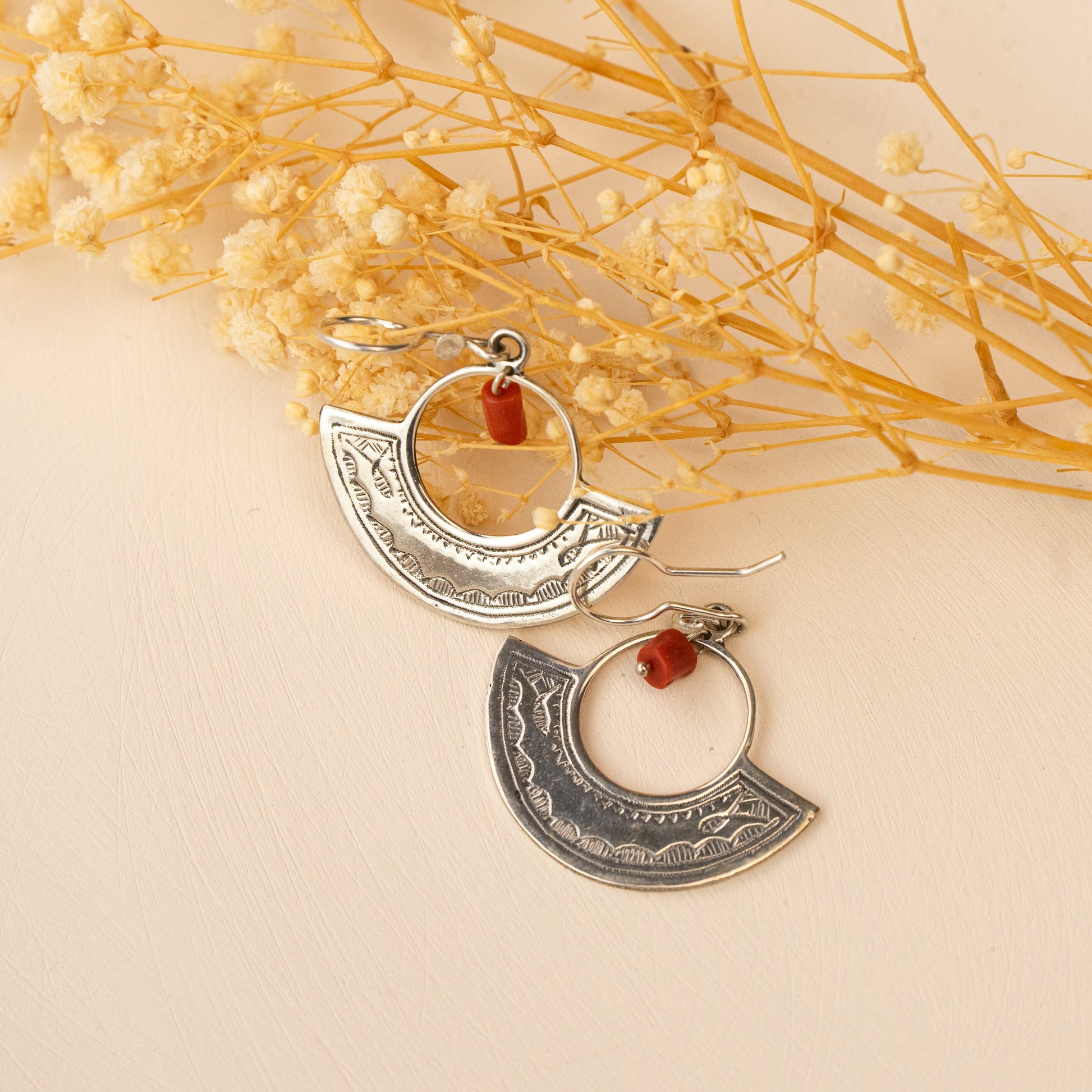 Boucles d'oreilles en argent massif 950 et corail brut.