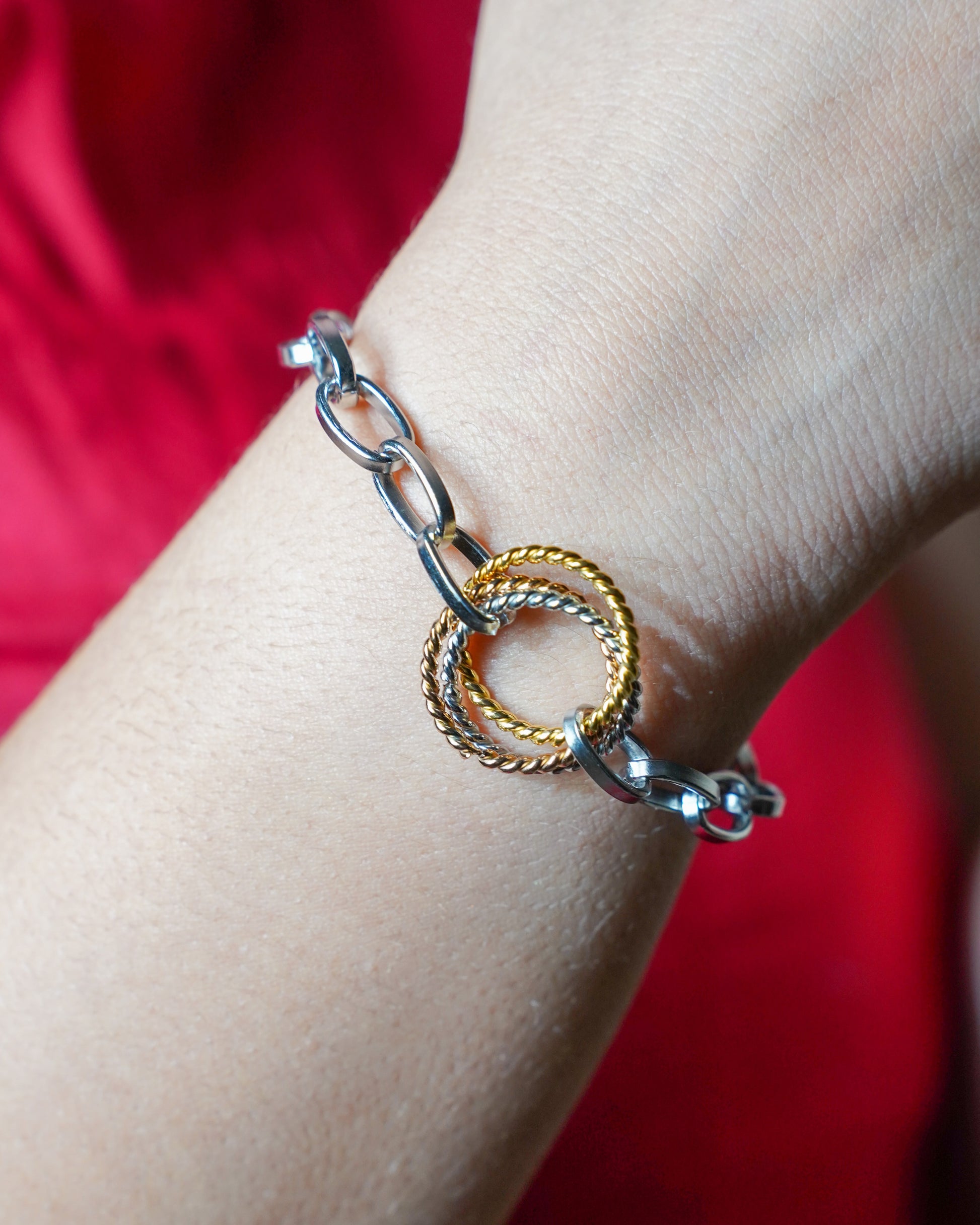 Gourmette en Acier inoxydable garantie 10 ans avec trois cercle en trois tons (Gold, Silver & Rose Gold)