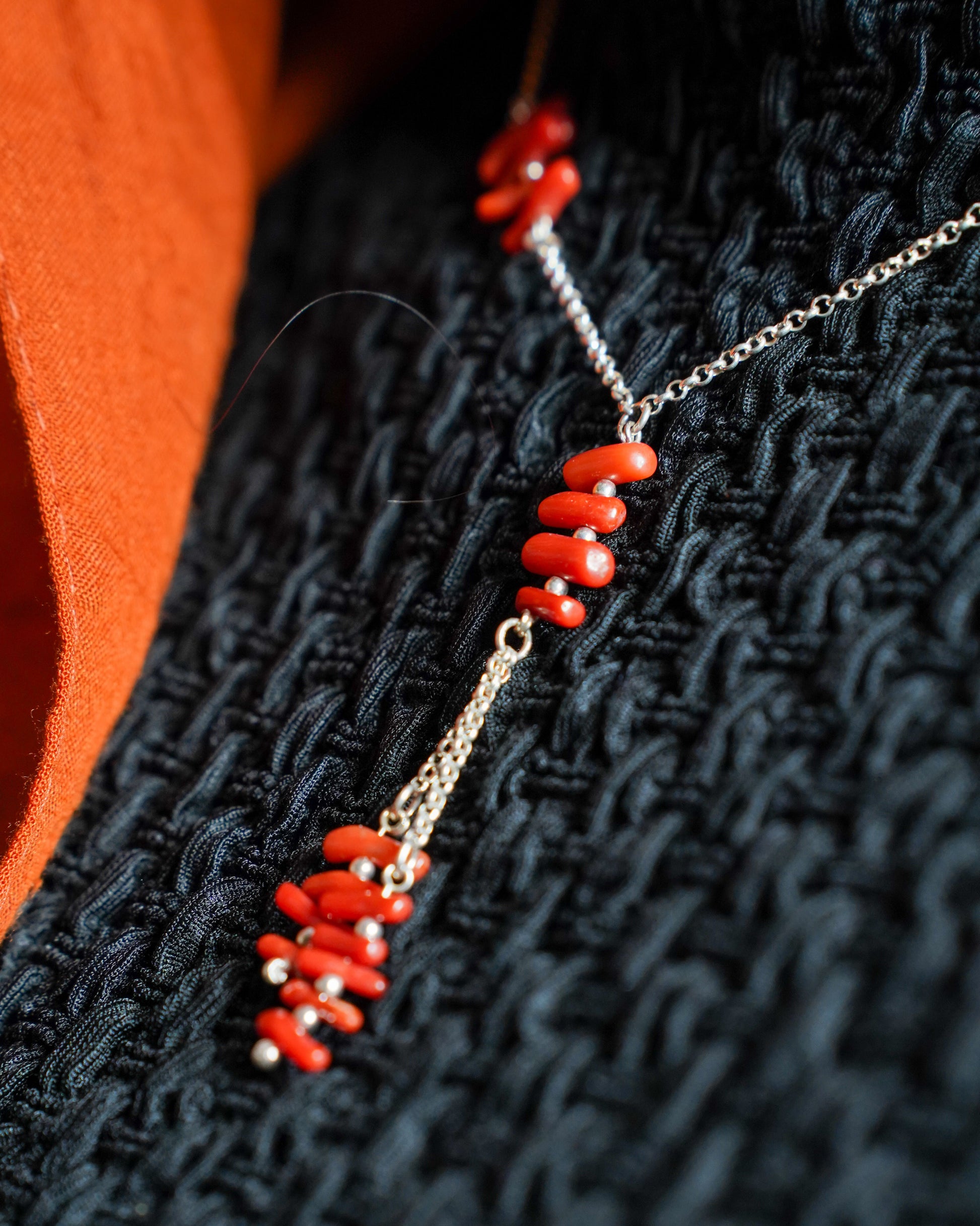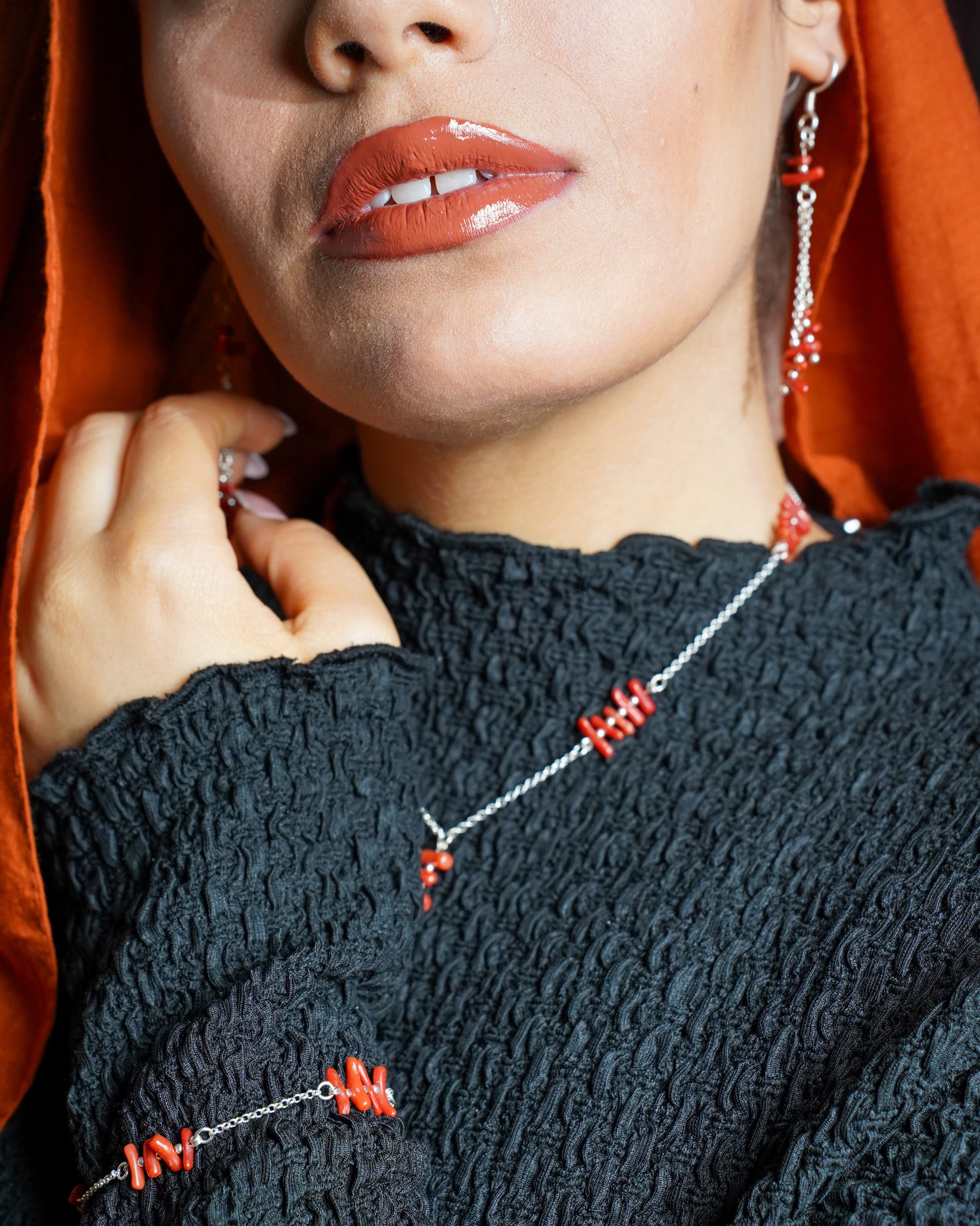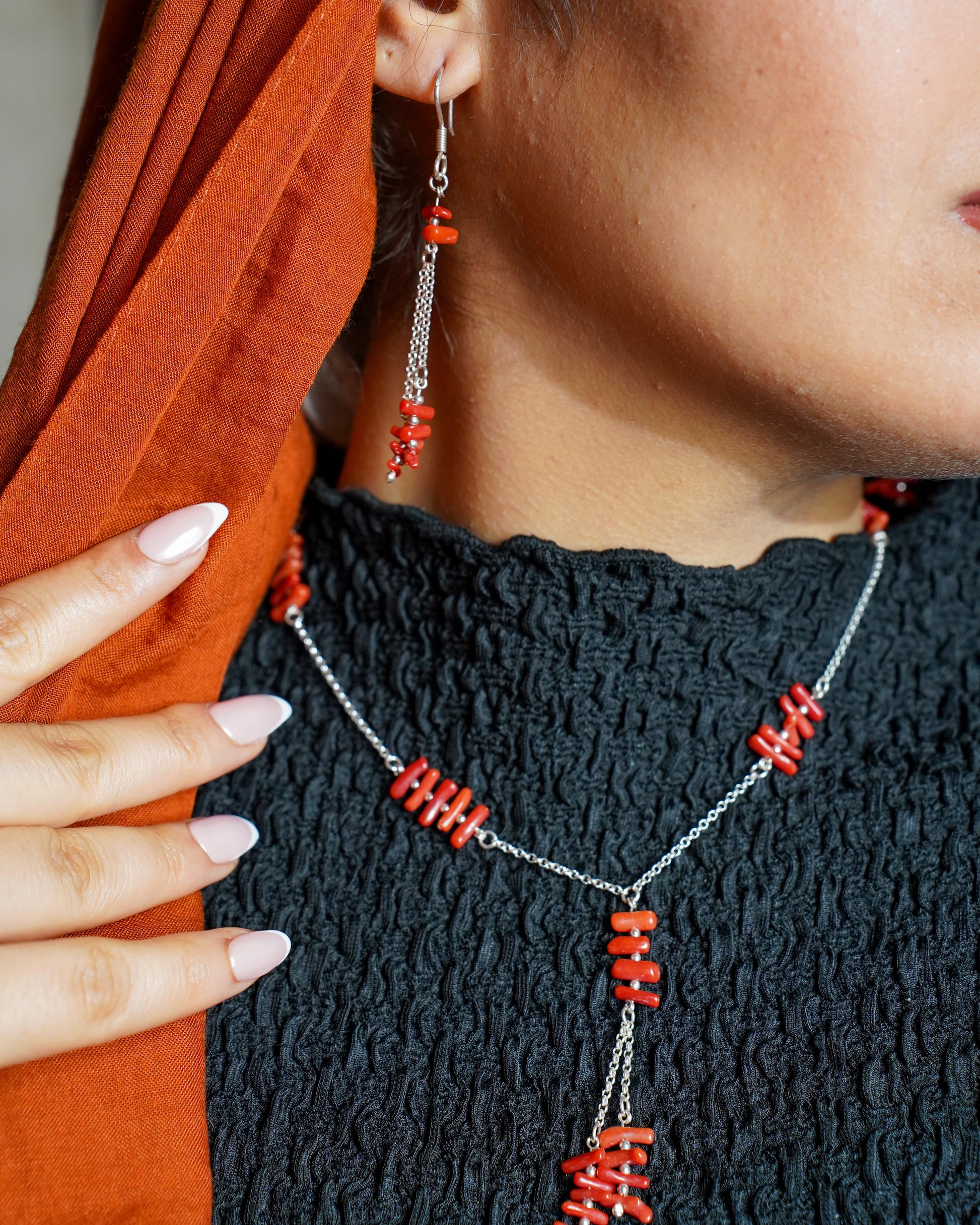 Trio composé de 3 pièces en argent massif & corail brut